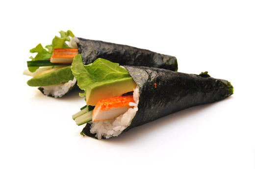 Croquant roll saumon avocat, riz vinaigré oignon frit. 8 pièce